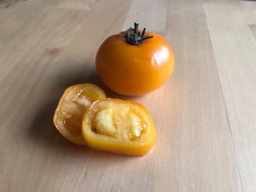 Golden fish/Goldfish eller Zolotaya Rybka. Klassisk gul/orange tomatsmak, alltså mild och lagom sötsyrlig. Håller sig fin i c:a en månad efter skörd.