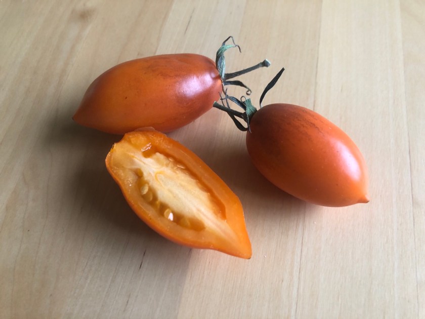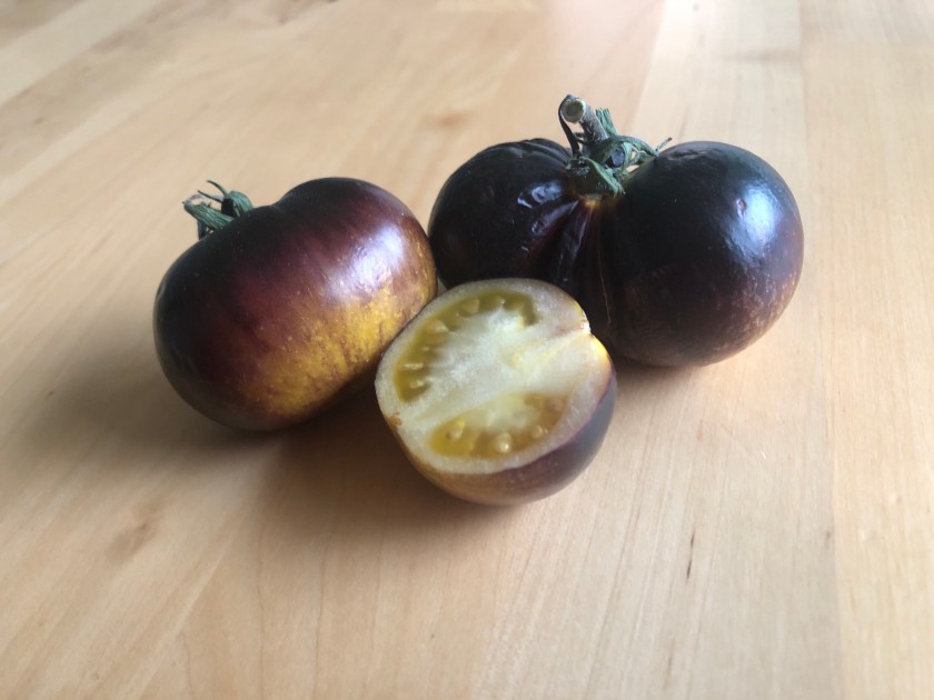 De behöver ett eget inlägg. För jag behöver skriva ner en hel del om dem, mest för mig själv. Och ett detektivarbete har det varit att få tag i så mycket information som jag har om dem. Jag fick nämligen inte särskilt mycket info medskickat när jag fick fröerna av en annan odlare. Alltså får jag bygga upp faktarutorna själv. Jag har inte lärt mig så många detaljer som behöver tas med när man kartlägger sina sorter, utan fokuserar på frukterna och hur plantan växte. Men med några bilder och korta beskrivningar kan jag kanske nå nån som vet mer än vad jag gör.
